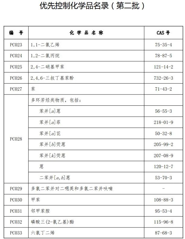 近日,生態(tài)環(huán)境部、工業(yè)和信息化部、衛(wèi)生健康委聯(lián)合印發(fā)《優(yōu)先控制化學(xué)品名錄(第二批)》,收錄了18種/類化學(xué)品